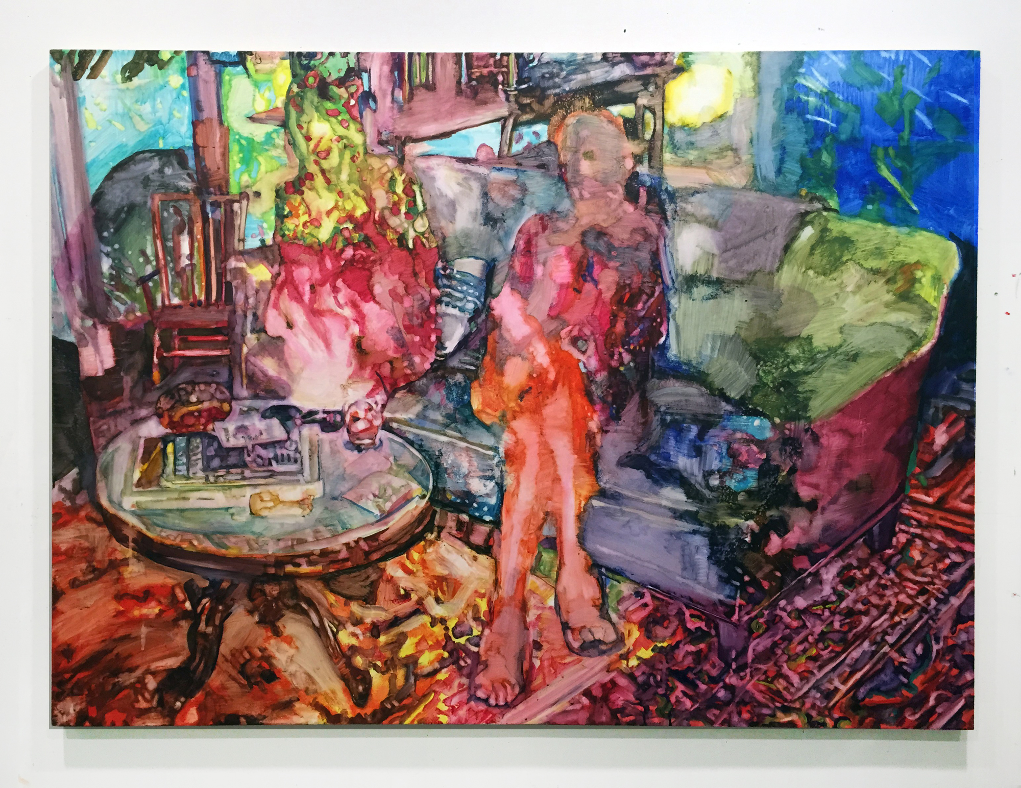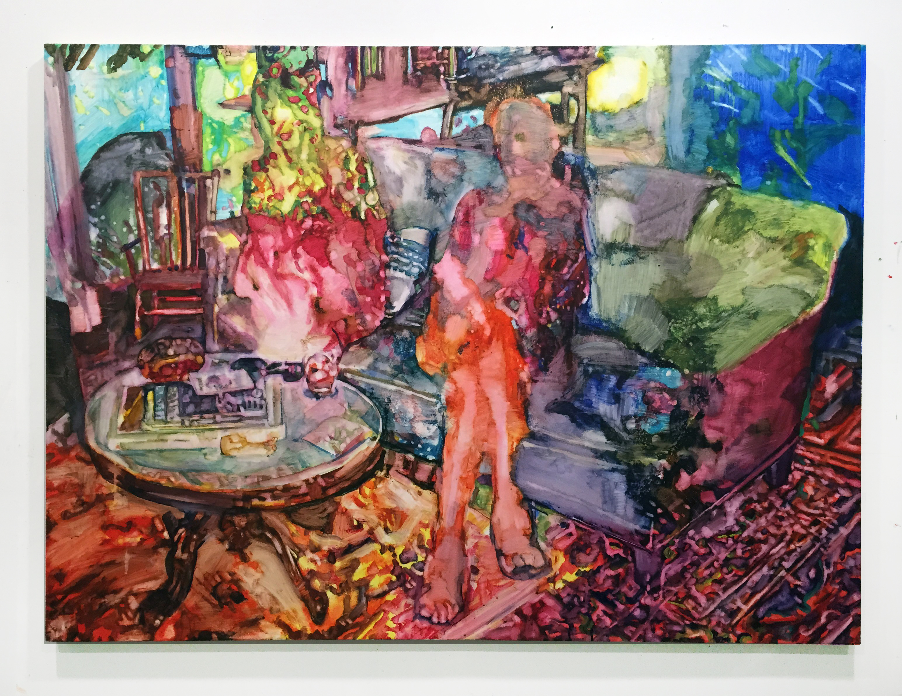 Regeneration, watercolor on canvas, 50 x 40 in. 2020