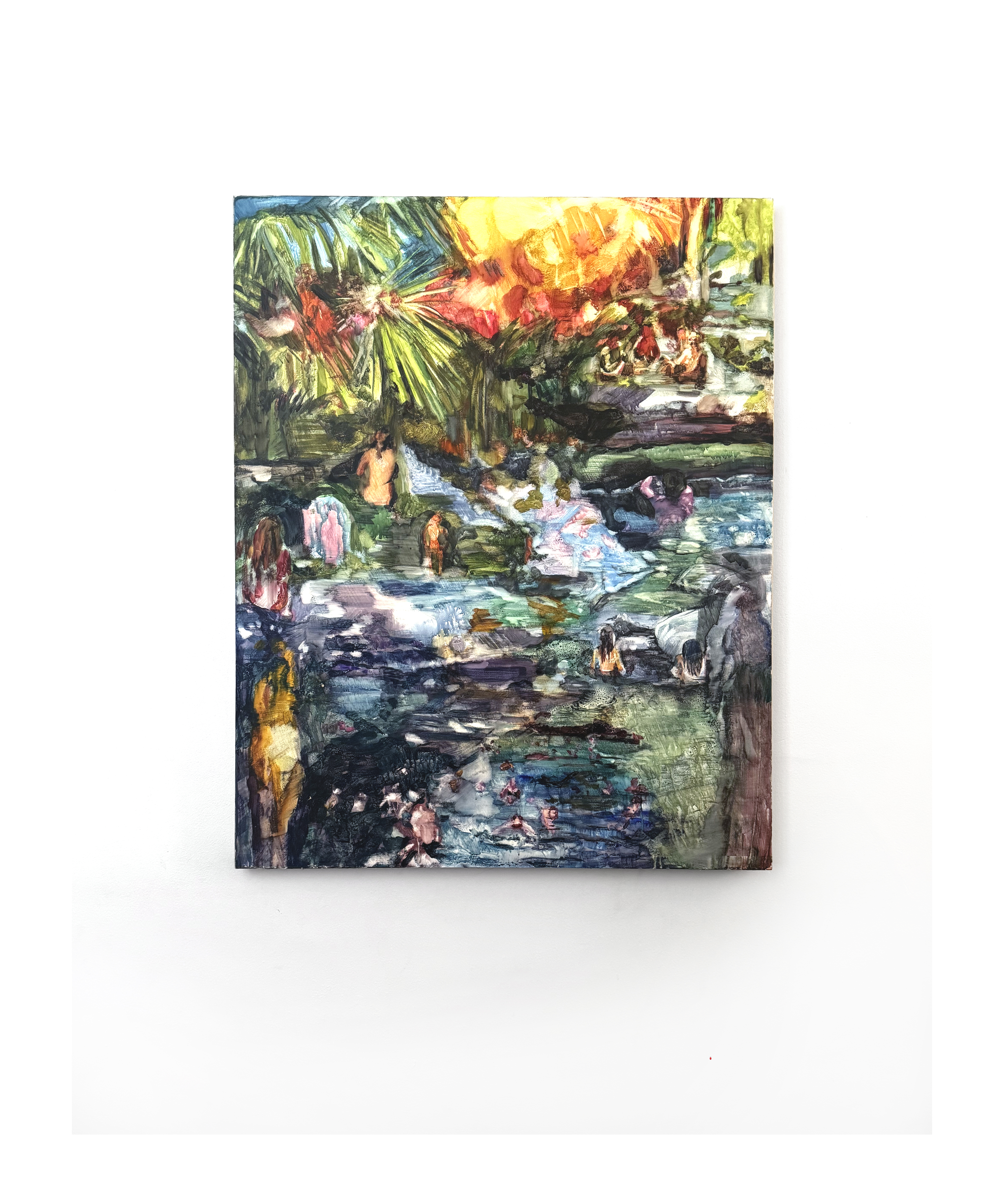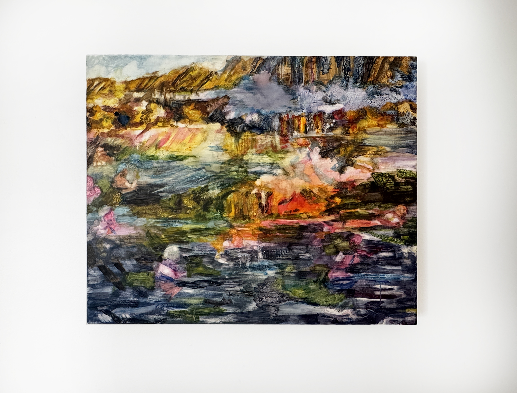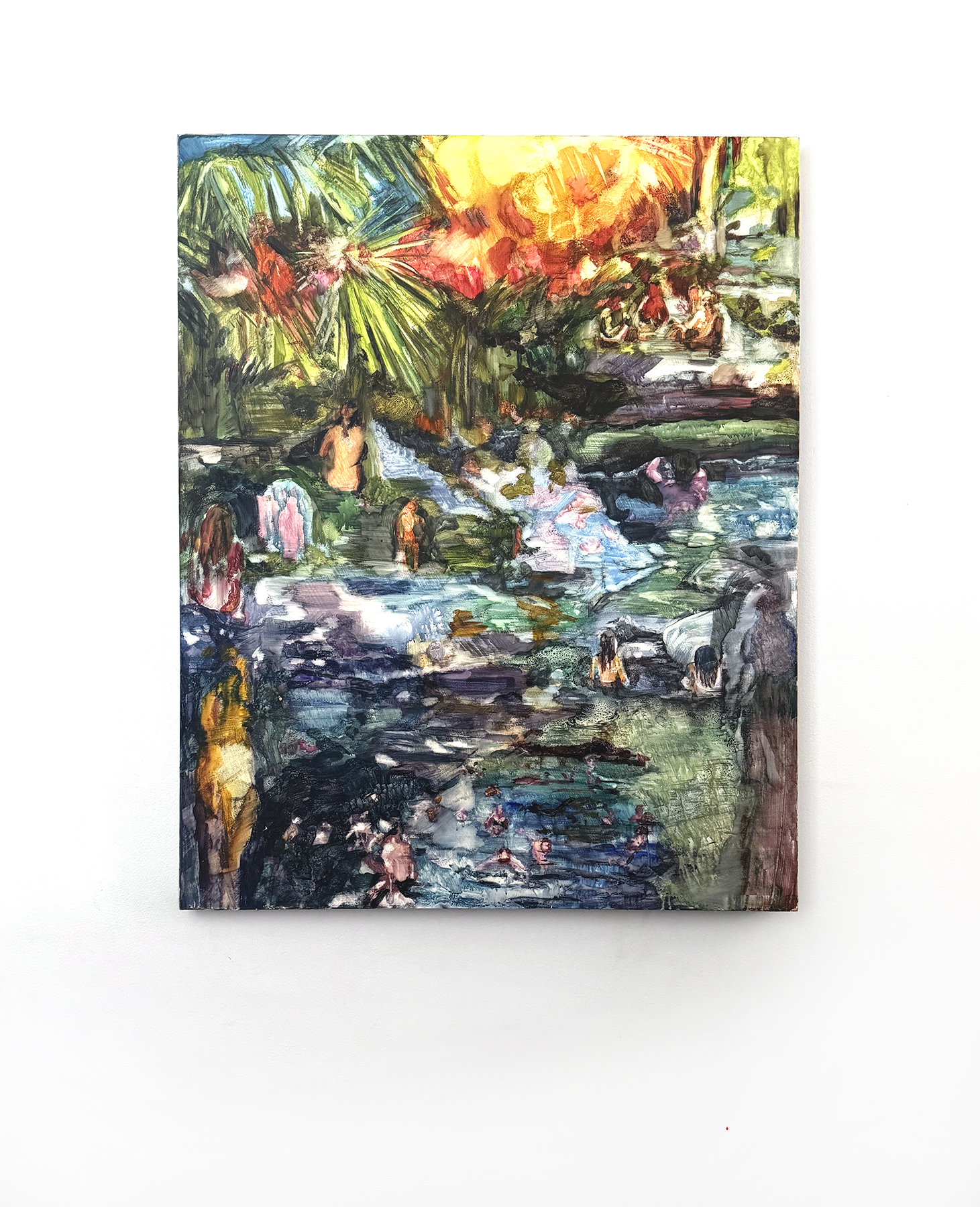 Streaming, watercolor on canvas, 19 5/8 x 24 in., 2025